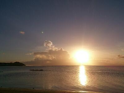今日のグアムの天気、今朝のタモン湾は晴れ。